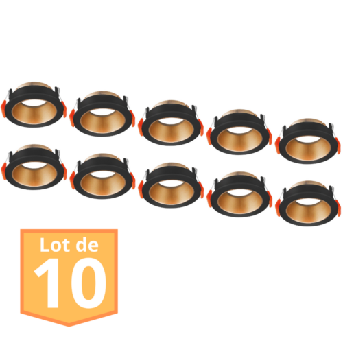 Lot de 10 supports de spots Beta R2 rond noir/cuivre-doré MR16 GU10/GU5.3