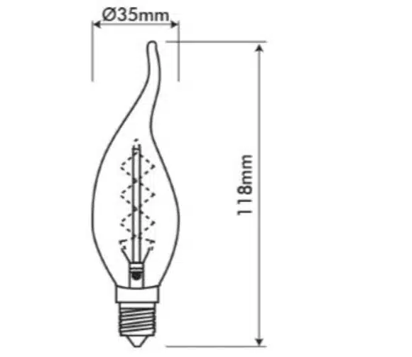 Son diffuseur est en verre avec une finition ambré et son culot E14 de couleur bronze. Cette ampoule décoart incandescente vintage bougie C35T 40W E14 2350K conviendra à tous types de luminaires mais particulièrement les luminaires suspendus ou l’ampoule est visible.
