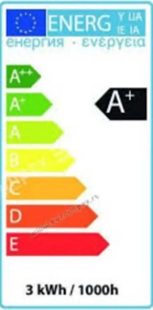 Grâce à son rendement énergétique élevé, elle possède une classe énergétique A+. Ainsi cette ampoule est conforme à la norme CE, à la directive RoHS et DEEE.