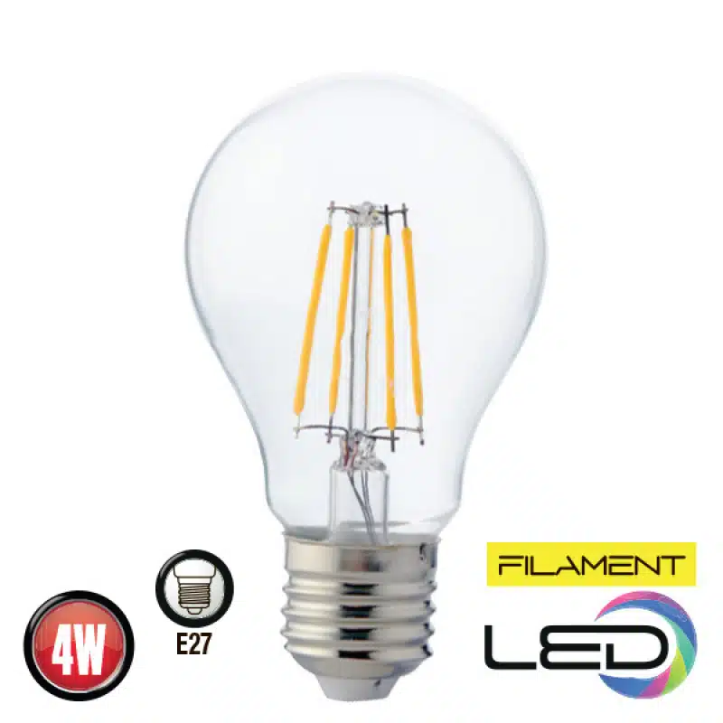 Cette ampoule LED standard à filament 4W (Eq. 32W) E27 4200K offre un design vintage et des performances énergétiques élevées. (Diam 60mm- Long 106mm).