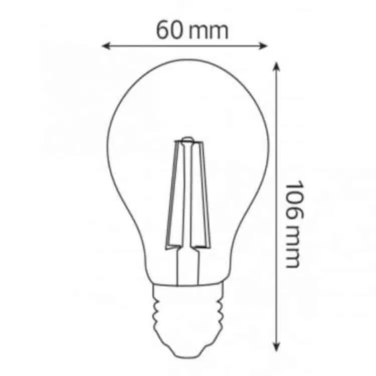 Cette ampoule LED standard à filament 6W (Eq. 48W) E27 4200K offre un design vintage et des performances énergétiques élevées. (Diam 60mm- Long 106mm).