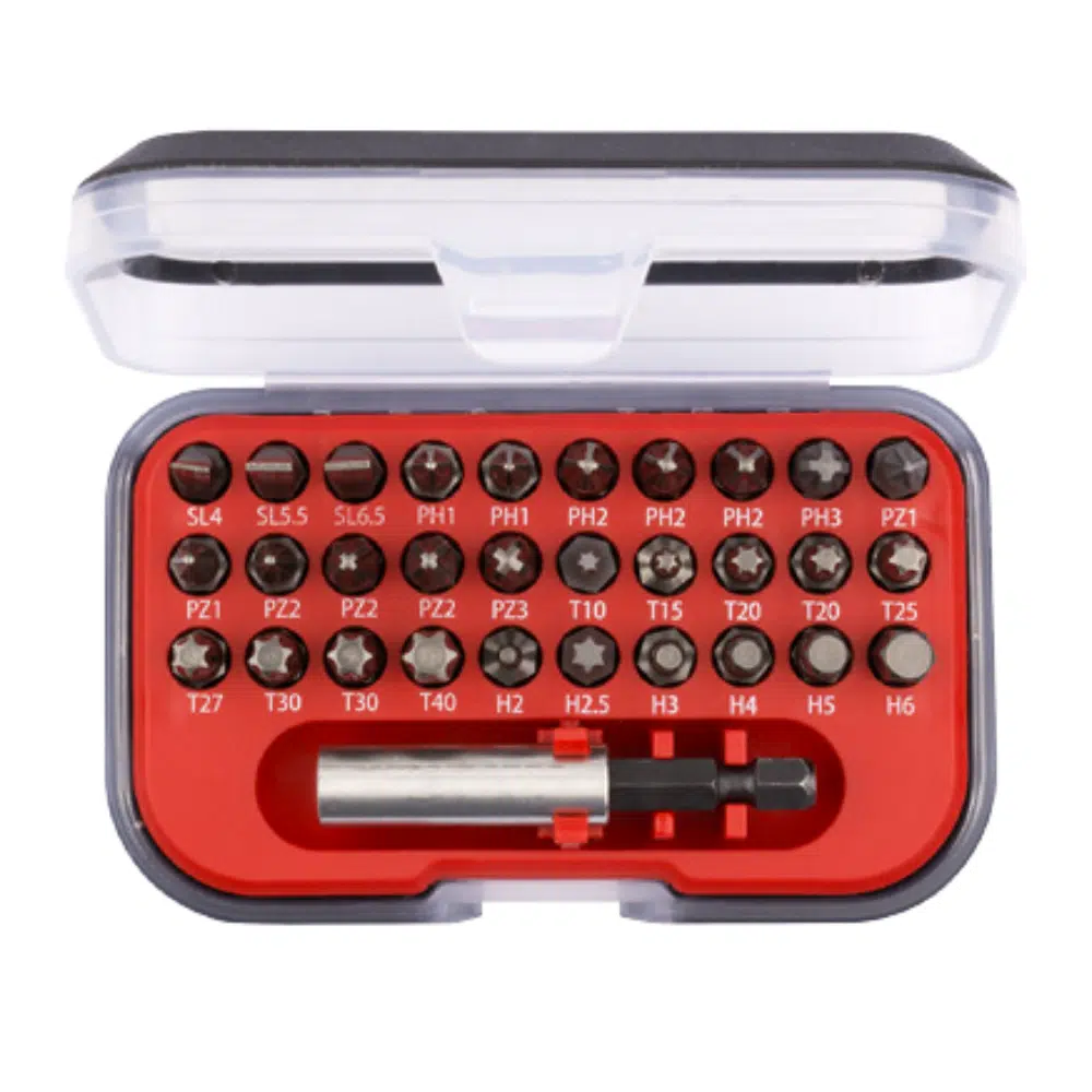 - Conception Compacte : Le coffret compact d’embouts de vissage 31 pièces mesure seulement 10,5 cm de longueur, 6,5 cm de largeur et 3,5 cm de profondeur. Il est donc facile à transporter et à ranger dans votre boîte à outils ou votre sac de travail.