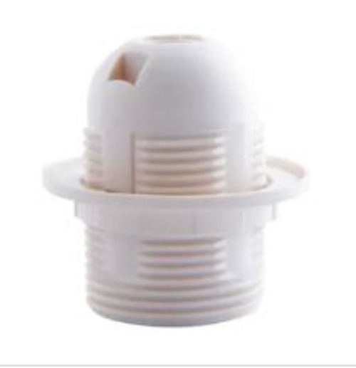 Cette douille électrique à vis E27 blanche avec bague Dim. 40x59mm est compatible avec des ampoules à culots vissant E27. Cette douille peut recevoir tous types d’abats jours. Produit conforme à la norme CE et à la directive RoHs.