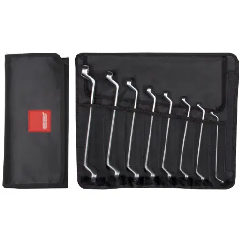 Le jeu de 8 clés polygonales doubles allant de 6×7 à 20x22mm, répond aux normes DIN838 et ISO 10104.