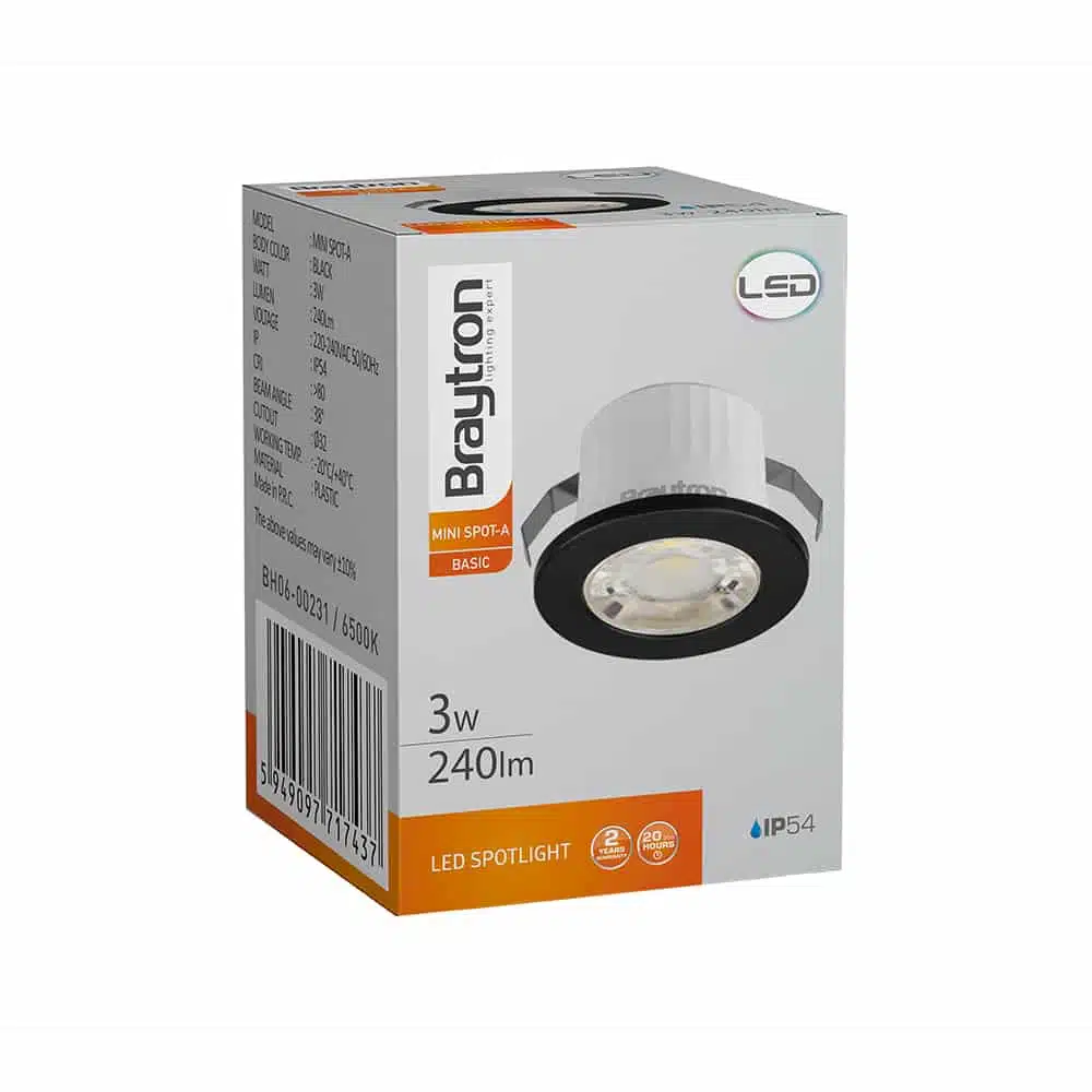 Pour l’installation des minis spots LED rond noir 3W 4000K, vous devez disposez d’un faux plafond avec une profondeur de 50mm minimum pour pouvoir encastrer le spot et les fondre dans le décor. Grâce au driver intégré et aux ressorts de fixations, l’installation est simple et rapide. Le diamètre de découpe est de 32mm. La température de couleur Kelvin de 4000K (blanc neutre), se rapproche le plus de la lumière naturelle du jour. De plus, doté d’un indice de protection IP54, ces minis spots peuvent être installés dans des pièces humides, notamment la salle de bain en Zone 2, selon la norme en vigueur.
