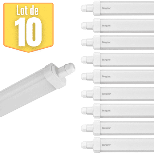 Cette réglette est équipée de LED de marque EPISTAR, qui fait partie des leader mondiaux de la fabrication de LED. Leur durée de vie est de 20000hrs. Son étiquette énergétique est classe E selon la nouvelle règlementation UE2019/2015 en vigueur. Cela correspond à l’ancienne classe énergétique A++ à A+