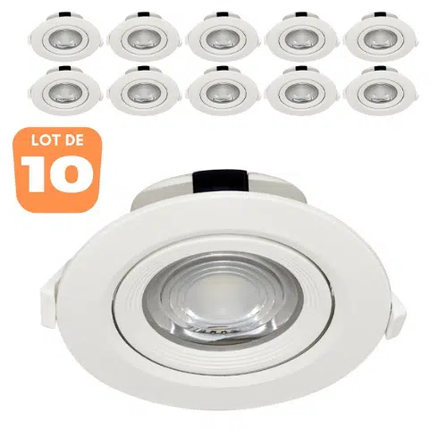 Sa température de couleur blanc naturel de 4000K, se rapproche le plus de la lumière naturelle du jour. Sa puissance de 10W avec 800lm équivaut à la puissance d’une ampoule incandescente de plus de 80W. Ce spot est orientable et cible facilement les sujets avec un angle de diffusion est de 45°, considéré comme moyen. Concernant la matière, il est en polycarbonate (PC), qui est un thermoplastique connu pour ses propriétés mécaniques excellentes entre -80° et + 135 °C. Le produit est donc recyclable. Avec une durée de vie de 20000hrs, ce produit est durable et économique. Ses dimensions sont les suivantes, hauteur 50mm, diamètre 120mm et diamètre de découpe 92mm.