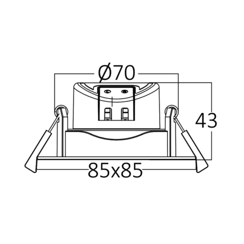 Concernant sa matière, il est en polycarbonate (PC), qui est un thermoplastique connu pour ses propriétés mécaniques excellentes entre -80° et + 135 °C. Le produit est donc recyclable. Avec une durée de vie de 20000hrs, ce produit est durable et économique. Ses dimensions sont les suivantes, Hauteur 40mm, diamètre 85mm et diamètre de découpe 70mm.