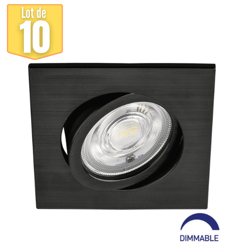 En effet, le lot de 10 spots LED encastrables 3en1 carré noir 7W IP20 Dimmable, s’adapte à chaque pièces en fonction de l’ambiance désirée. Avec son driver intégré et ses ressorts de fixation, son installation est simple et rapide. Son efficacité énergétique et sa longue durée de vie permettent plus de 80% d’économie d’énergie, par rapport aux éclairages traditionnels incandescents ou halogènes. Son indice de rendu des couleurs (IRC) est élevé Ra⩾80. De plus il n’émet pas de radiation UV ni infrarouge. Ce spot est dimmable et peut donc être connecté à un interrupteur variateur d’intensité. Cela permet de varier l’intensité de l’éclairage pour le tamiser ou l’intensifier.