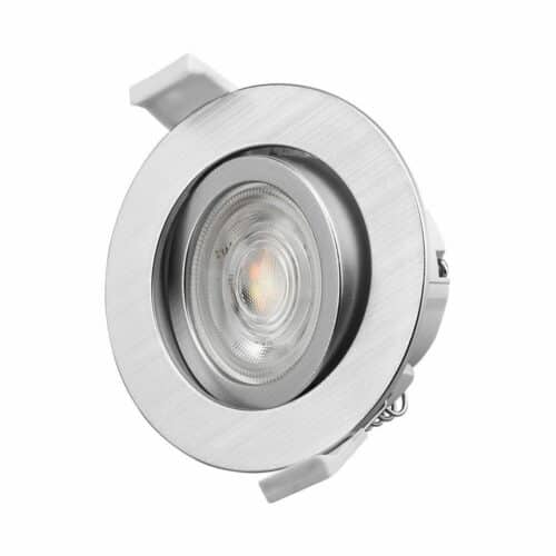 Ce spot dispose d’un interrupteur de couleur Kelvin permettant de choisir entre 3 températures de couleurs. Le blanc chaud 3000K ambiance convivial et cosy, le blanc naturel 4000K qui se rapproche le plus à la lumière du jour et le blanc froid 6500K qui est énergisant et convient donc pour la concentration. Sa puissance de 7W avec 670lm équivaut à la puissance d’une ampoule incandescente de plus de 60W. Il est orientable et son angle de diffusion est de 38°, ce qui est considéré comme moyen. Concernant la matière, il est en polycarbonate (PC), qui est un thermoplastique connu pour ses propriétés mécaniques excellentes entre -80° et + 135 °C. Le produit est donc recyclable. Avec une durée de vie de 20000hrs, ce produit est durable et économique. Ses dimensions sont les suivantes, Hauteur 40mm, diamètre 85mm et diamètre de découpe 70mm.