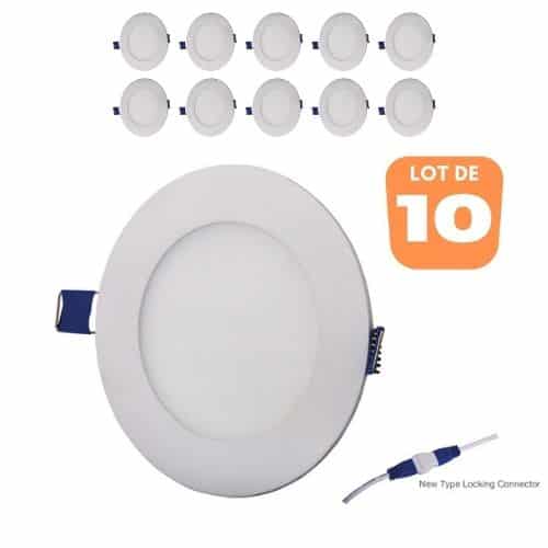 Les spots contenus dans ce lot de 10 spots LED ronds extra plats 3W 3000K, sont équipée de puce SMD LED de marque SANAN. Ce fabricant de LED fait partie des leaders mondiaux dans son domaine. De ce fait, les spots LED ronds extra plats 3W 3000K, offrent un éclairage instantané, homogène et sans éblouissement ni émission de chaleur. Extra plat avec une épaisseur de seulement 20mm, leurs encombrements est très faible. Grâce aux ressorts de fixation, leur installation est simple et rapide. Le verrouillage du spot avec son transformateur ce fait grâce au nouveau système de connexion. Le diamètre des spots est de 85mm et le diamètre de découpe au plafond est de 70mm.
