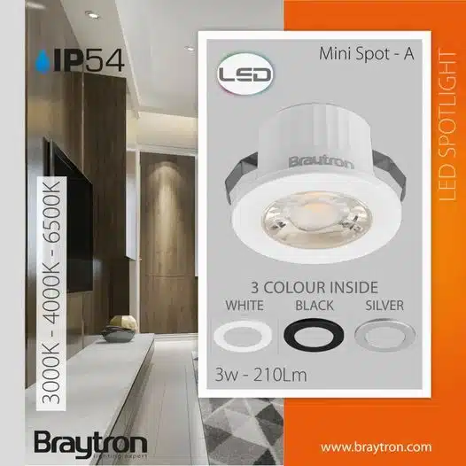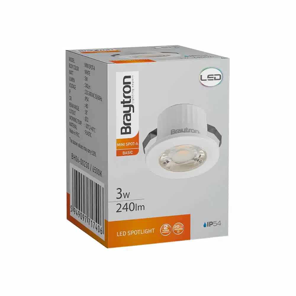 La température de couleur Kelvin est de 6500K (blanc froid). Cette couleur d’éclairage convient aux pièces ou l’on s’active car elle aide à la concentration (cuisine, buanderie, bureaux, garage, atelier etc. De plus, doté d’un indice de protection IP54, ce mini spot peut être installé dans des pièces humides. Notamment la salle de bain en Zone 2, selon la norme en vigueur.