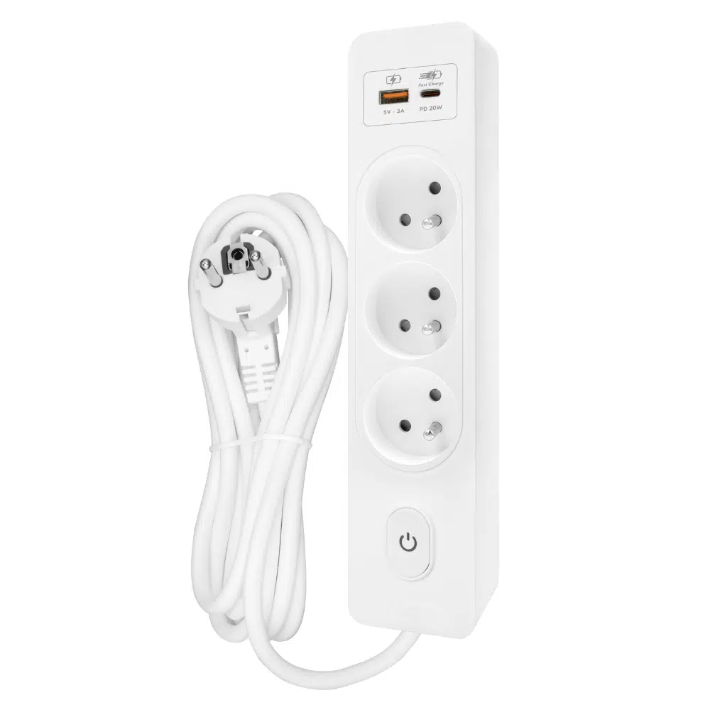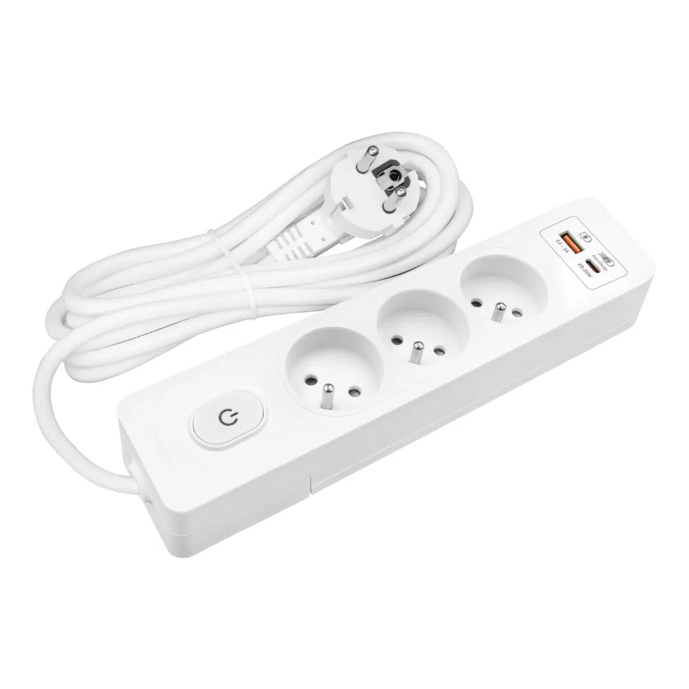 La multiprise SELDUR G3FH32B, avec ses 3 prises 2P+T et protection enfant, permet de brancher simultanément trois appareils électriques. Elle dispose également de ports USB A et USB C pour la charge rapide des appareils électroniques.