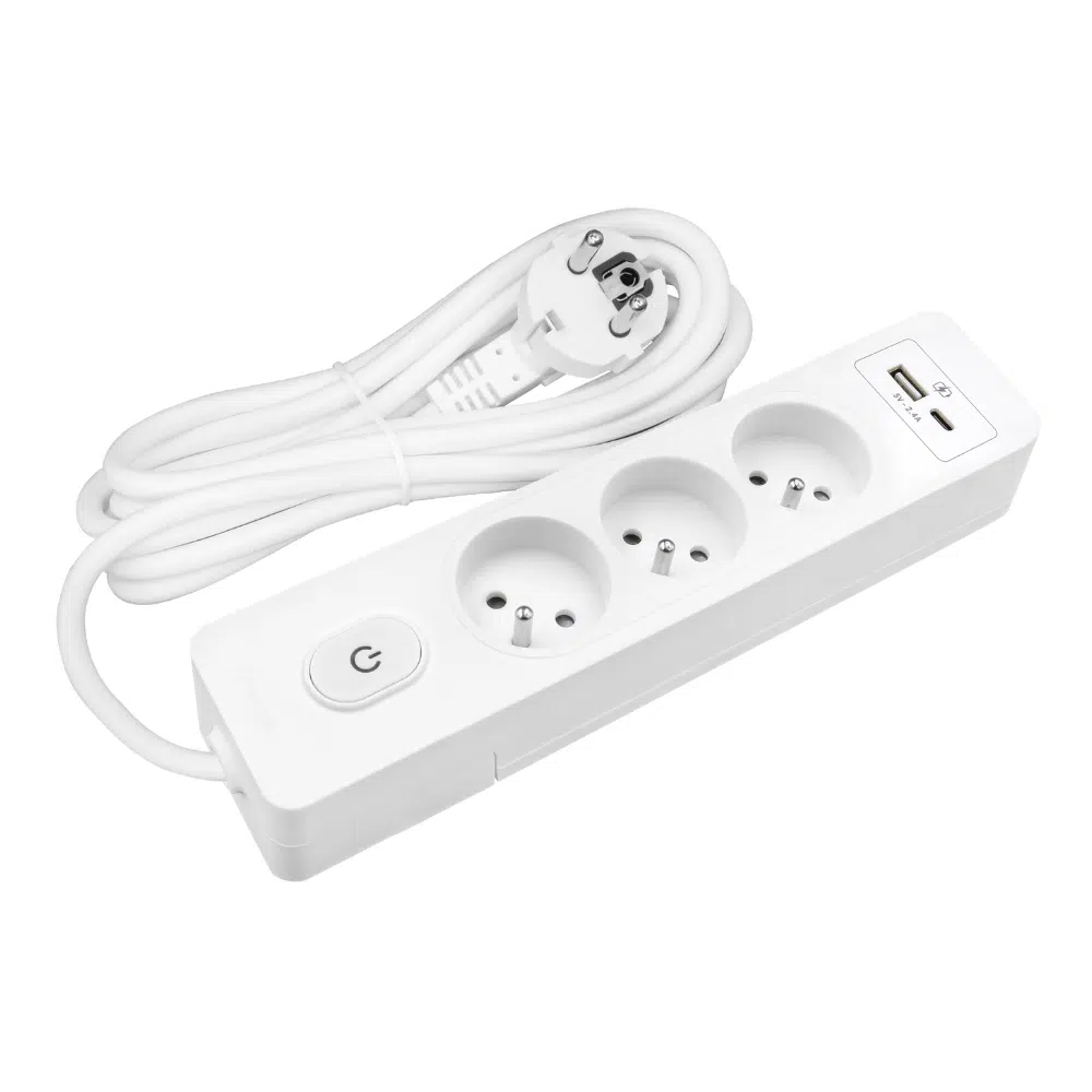 La multiprise SELDUR G3FU22B, avec ses 3 prises 2P+T et protection enfant, permet de brancher simultanément trois appareils électriques. Elle dispose également de ports USB A et USB C pour la charge des appareils électroniques.