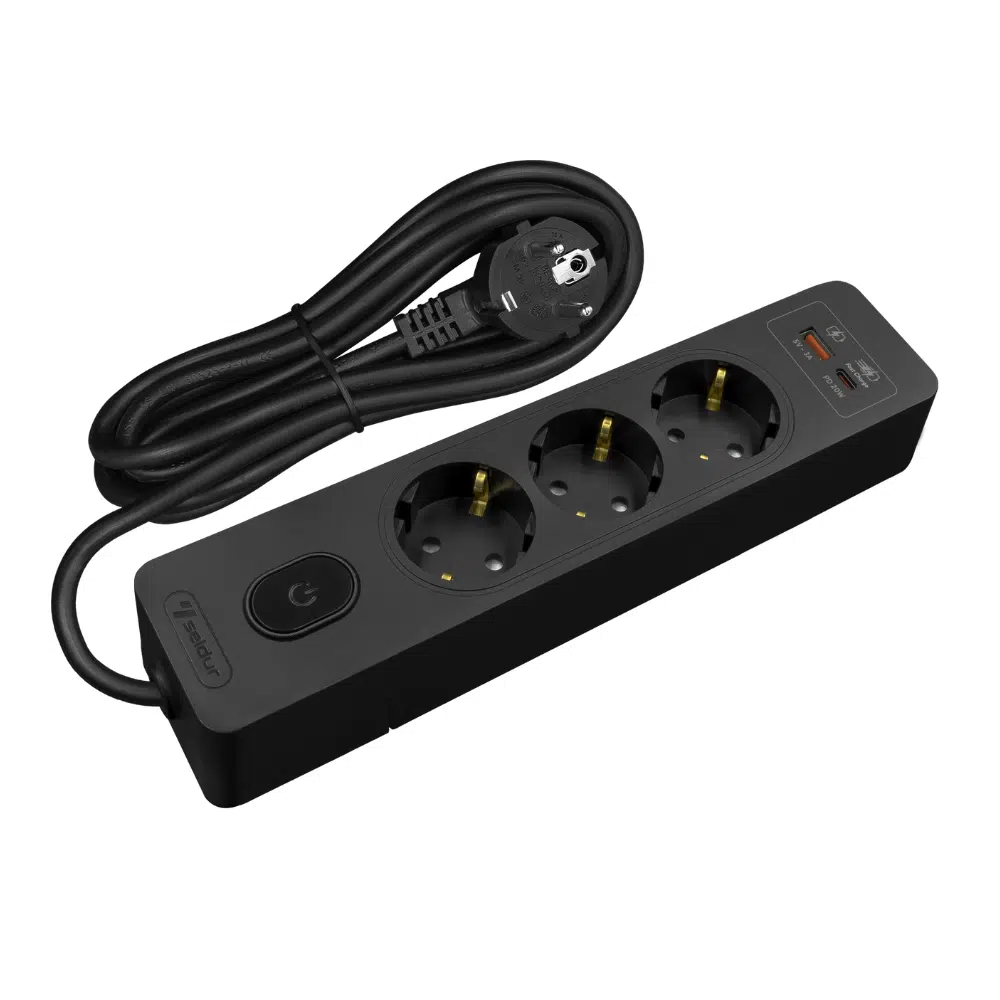 La multiprise SELDUR G3TH52S, avec ses 3 prises 2P et protection enfant, permet de brancher simultanément trois appareils électriques. Elle dispose également de ports USB A et USB C pour la charge rapide des appareils électroniques.