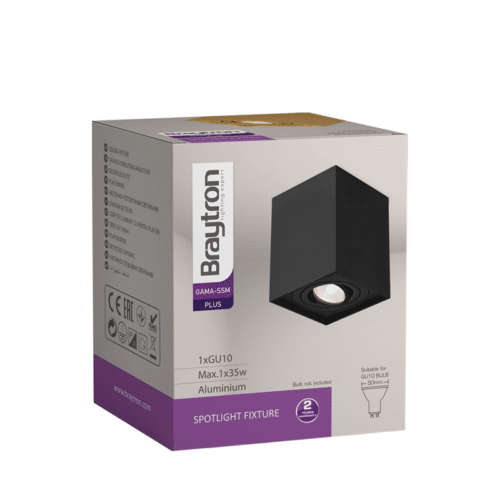 L’avantage de ce plafonnier alu GAMA-8010E, est qu’il est doté d’une douille GU10 qui lui permet d’accueillir des ampoules LED GU10 avec une puissance MAX de 35W. La puissance Max indiquée sur les luminaires correspond à la puissance maximum consommée par l’ampoule et non pas la puissance restituée par l’ampoule. Vous pouvez par exemple installer une ampoule LED 8W équivalente à 60W. Les 8W correspondent à la puissance consommée et les 60W à la puissance restituée. Vous ferez donc plus de 80% d’économie d’énergie avec cette ampoule LED 8W. Le tout en ayant la même intensité qu’une ampoule incandescente 60W. Cependant vous pouvez également installer une ampoule LED plus puissante de 10, 12 ou 15W équivalente à 100, 120 ou 160W. Tant que la valeur de puissance consommée de l’ampoule ne dépasse pas les 35W. De plus, ce plafonnier est orientable et permet donc de cibler certaines zones plus particulièrement.