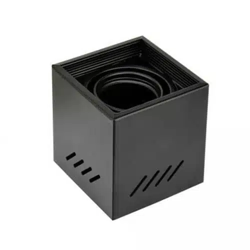 En effet, le plafonnier FREZYA -S cube noir MR16 GU10 IP20 se fixe simplement en saillie au plafond sur tous types de supports, plâtre, béton etc. Munit d’un support de spot orientable, la lumière peut être cibler vers un objet ou une zone particulière. Le plafonnier est fournie avec une douille GU10 pouvant accueillir tous types d’ampoule GU10. Nous conseillons l’utilisation d’ampoule spot GU10 à LED beaucoup moins énergivores que les ampoules halogènes. Sa structure est en métal robuste et durable avec une finition noir mat, pour un look chic et contemporain. En ce qui concerne les dimensions, la hauteur du plafonnier est de 100mm et la longueur 92mm. Pour finir, l’indice de protection est un IP20, ce qui correspond à une installation uniquement à l’intérieur de l’habitat. Ce plafonnier convient aussi bien pour la maison que pour des applications commerciales (hôtel, restaurant, boutique etc..)