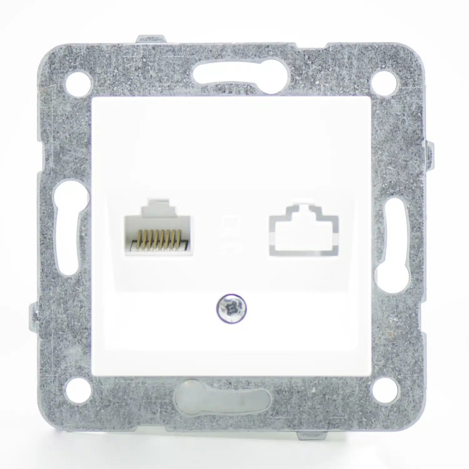Cette prise RJ45 blanc comprend le mécanisme et le bouton. Vous n’avez plus qu’à l’associer avec une plaque décorative (plastique, bois massif, métal, verre ou corian) pour obtenir un appareillage complet. Prise pour réseaux de communication, catégorie 6. Les appareillages VIKO sont modernes, robustes et élégants avec des lignes droites et précises. Doté de bornes automatiques, la connexion des fils se fait sans tournevis pour une installation simple et rapide. Produits homologués aux normes NF et CE.