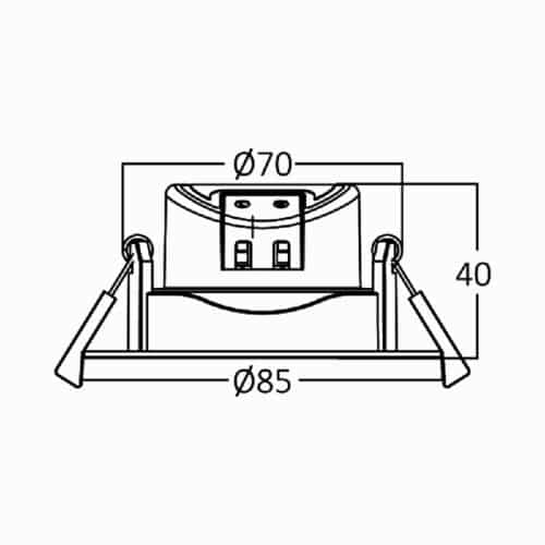 Ce spot dispose d’un interrupteur de couleur Kelvin permettant de choisir entre 3 températures de couleurs. Le blanc chaud 3000K ambiance convivial et cosy, le blanc naturel 4000K qui se rapproche le plus à la lumière du jour et le blanc froid 6500K qui est énergisant et convient donc pour la concentration. Sa puissance de 7W avec 560lm équivaut à la puissance d’une ampoule incandescente de plus de 50W. L’angle de diffusion est de 38° ce qui est considéré comme moyen. Concernant sa matière, il est en polycarbonate (PC), qui est un thermoplastique connu pour ses propriétés mécaniques excellentes entre -80° et + 135 °C. Le produit est donc recyclable. Avec une durée de vie de 20000hrs, ce produit est durable et économique. Ses dimensions sont les suivantes, Hauteur 40mm, diamètre 85mm et diamètre de découpe 70mm.