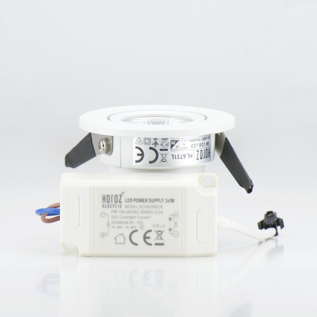 Pour l’installation du spot LED rond blanc 3W 2700K, vous devez disposez d’un faux plafond avec une profondeur de 70mm minimum pour pouvoir encastrer le spot et le fondre dans le décor. Le diamètre de découpe est de 60mm. Grâce aux ressorts de fixation, l’installation est simple et rapide. Concernant l’éclairage, la température de couleur Kelvin est de 2700K (blanc chaud). Cette couleur d’éclairage crée une atmosphère chaleureuse, propice à la détente et la convivialité. La puissance de 3W LED est équivalente à la puissance d’une ampoule incandescente classique de 25W. Avec de très faible consommation d’énergie et une très longue durée de vie, vous réalisez de réelles économies. Spot vendu avec son transformateur.
