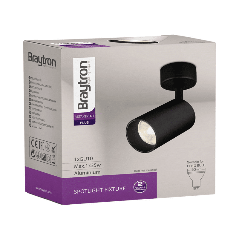 Le spot saillie BETA-S2 est orientable ce qui permet de cibler une zone plus particulièrement. De plus sa douille GU10 35W MAX, lui permet d’accueillir des ampoules LED GU10 avec une puissance MAX de 35W. La puissance Max indiquée sur les luminaires correspond à la puissance maximum consommée par l’ampoule et non pas la puissance restituée par l’ampoule. Vous pouvez par exemple installer une ampoule LED 8W équivalente à 60W. Les 8W correspondent à la puissance consommée et les 60W à la puissance restituée. Vous ferez donc plus de 80% d’économie d’énergie avec cette ampoule LED 8W. Le tout en ayant la même intensité qu’une ampoule incandescente 60W. Cependant vous pouvez également installer une ampoule LED plus puissante de 10, 12 ou 15W équivalente à 100, 120 ou 160W. Tant que la valeur de puissance consommée de l’ampoule ne dépasse pas les 35W. .