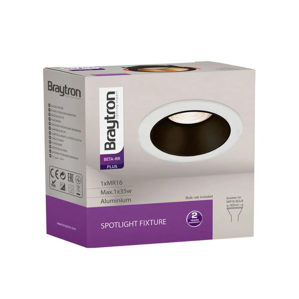 L’indice de protection IP20 impose une installation à l’intérieur de l’habitat. Le support de spot Beta R2 rond noir/cuivre-doré, convient aussi parfaitement aux locaux commerciaux comme les magasins, bureaux, restaurants, hôtels..