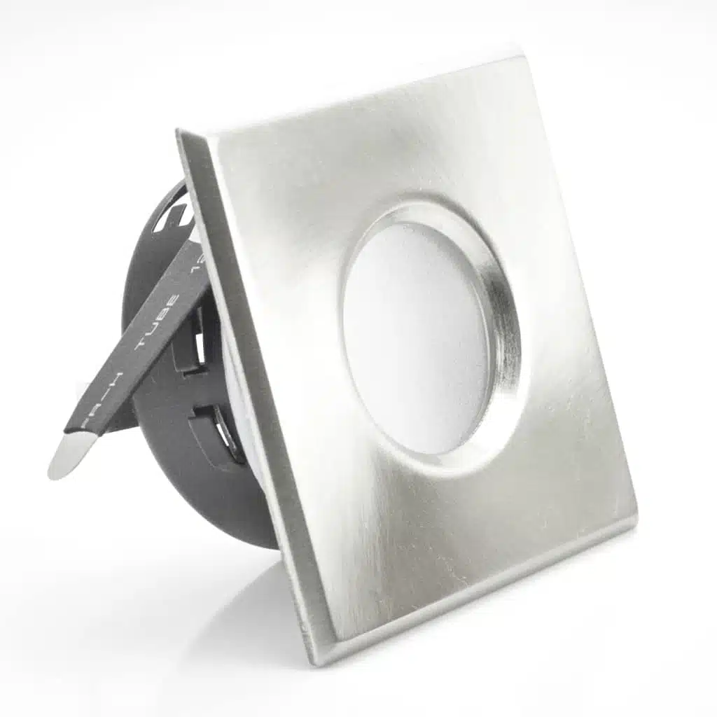 Ce support downlight carré mat chrome étanche IP65 Dim 83x83mm est spécialement adaptée aux pièces humides (type salle de bain). Son indice de protection IP65 le rend parfaitement étanche afin de garantir votre sécurité. Pour l’installation, vous devez disposez d’un faux plafond avec une profondeur de 60mm minimum pour pouvoir encastrer le spot et le fondre dans le décor. Le diamètre de découpe est de 65mm. Ce produit est vendu seul et doit être équipé d’une douille et d’une ampoule MR16 G5.3/G6.35 halogène de 50W ou une ampoule LED équivalente de 6W. Produit conforme à la norme CE, à la directive RoHS et DEEE.