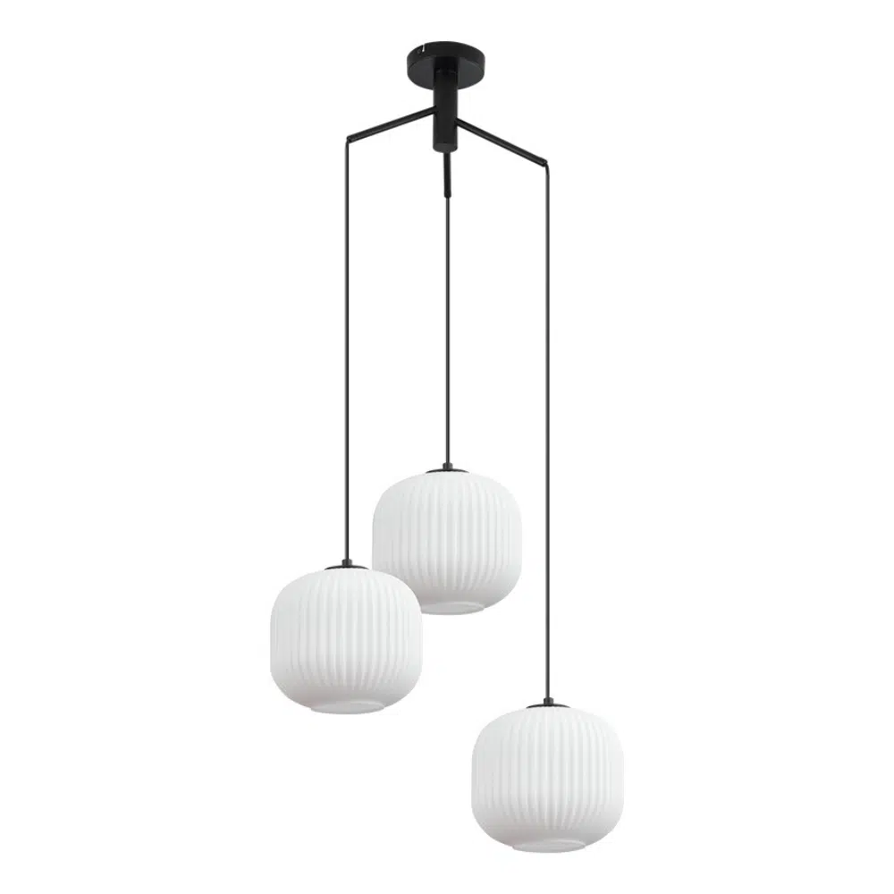 Cette suspension 3 lampes verre opale, dotée de trois douilles E27, offre une luminosité optimale grâce à sa puissance de 3x23W. Son socle en métal noir et le verre opale des diffuseurs ajoutent une touche de modernité à votre décoration intérieure.