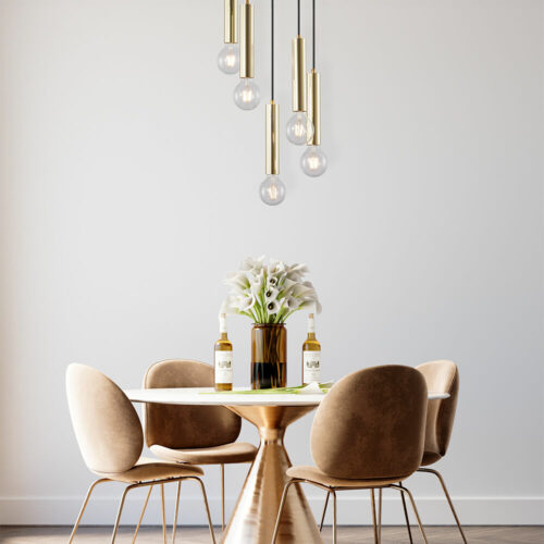 Sublimez vos intérieurs avec la suspension décorative 5xE27 23W IP20 BV04-00055. Ce luminaire au design chic doré dispose de 5 douilles E27, pour une luminosité généreuse et personnalisable.
