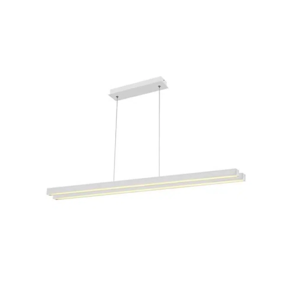 Cette suspension LED design blanc 35W (Eq. 280W) Long. 850mm avec son style moderne et contemporain sera idéalement installée au dessus de la table à manger pour en faire la pièce maitresse de votre décoration intérieur. Fixée au plafond, cette suspension LED design 35W (Eq. 280W) Long. 850mm diffuse une lumière homogène sans éblouissement avec très peu d’émission de chaleur. Sa structure est en aluminium et acrylique et elle est composée de LED intégrées offrant de très faible consommation et une très longue durée de vie. Cette suspension est conforme à la norme CE, à la directive RoHS et DEEE. Grâce à son rendement énergétique élevé, elle possède une classe énergétique A à A++. Application domestique ou commerciale.