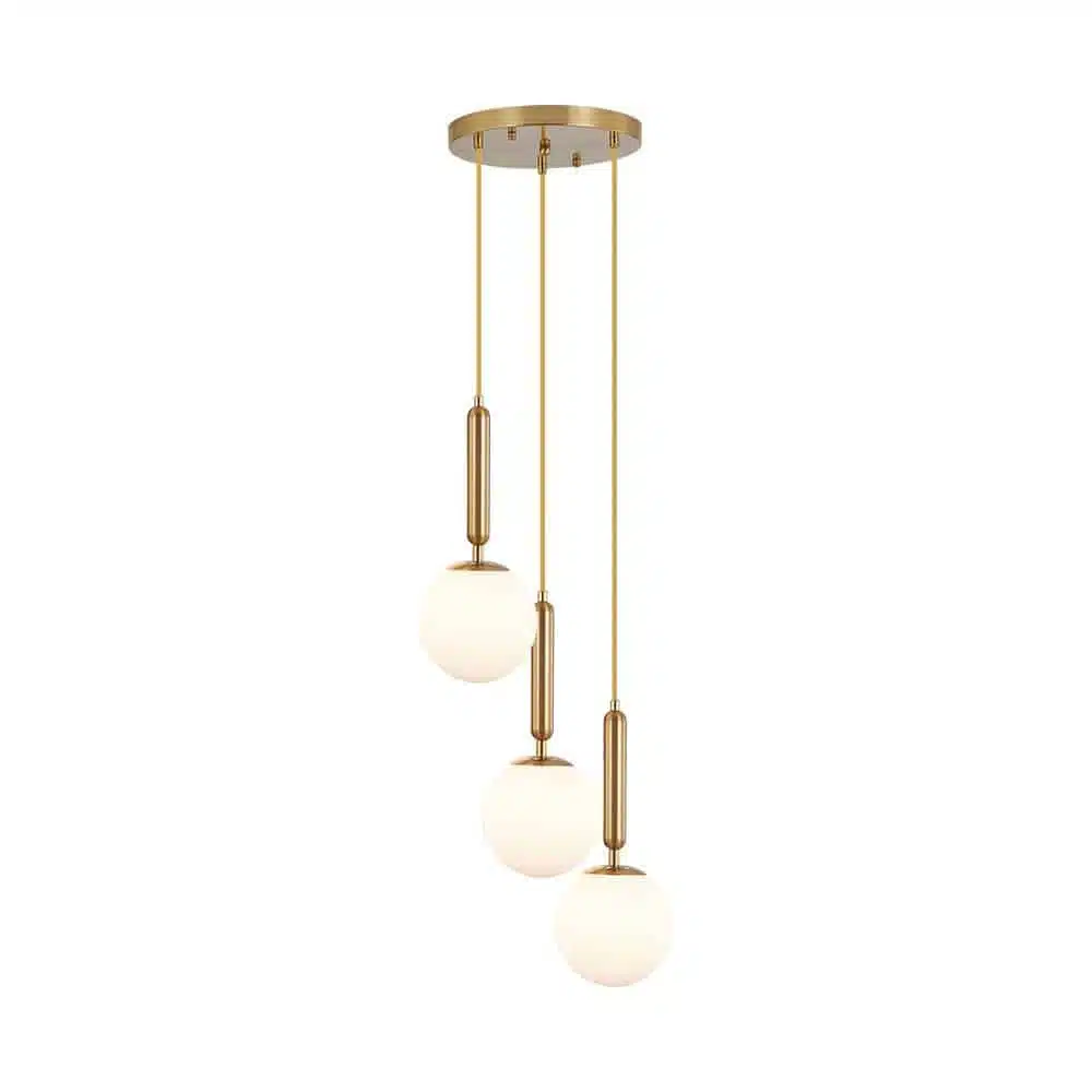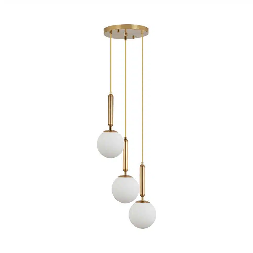 Apportez du charme et de la sophistication à votre intérieur avec la suspension décorative 3xG9 BV01-00061. Composée de trois globes en verre opalin soutenus par une structure dorée élégante, elle diffuse une lumière douce et chaleureuse.