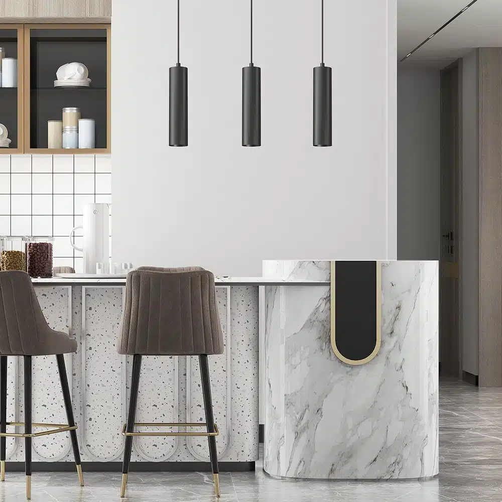 La suspension tube BETA noir est équipée d’une douille GU10 et d’un cordon d’alimentation d’une longueur de 1.45 mètre. Elle est donc compatible avec les ampoules GU10 (puissance MAX 35W). La puissance Max indiquée sur les luminaires correspond à la puissance maximum consommée par l’ampoule et non pas la puissance restituée par l’ampoule.